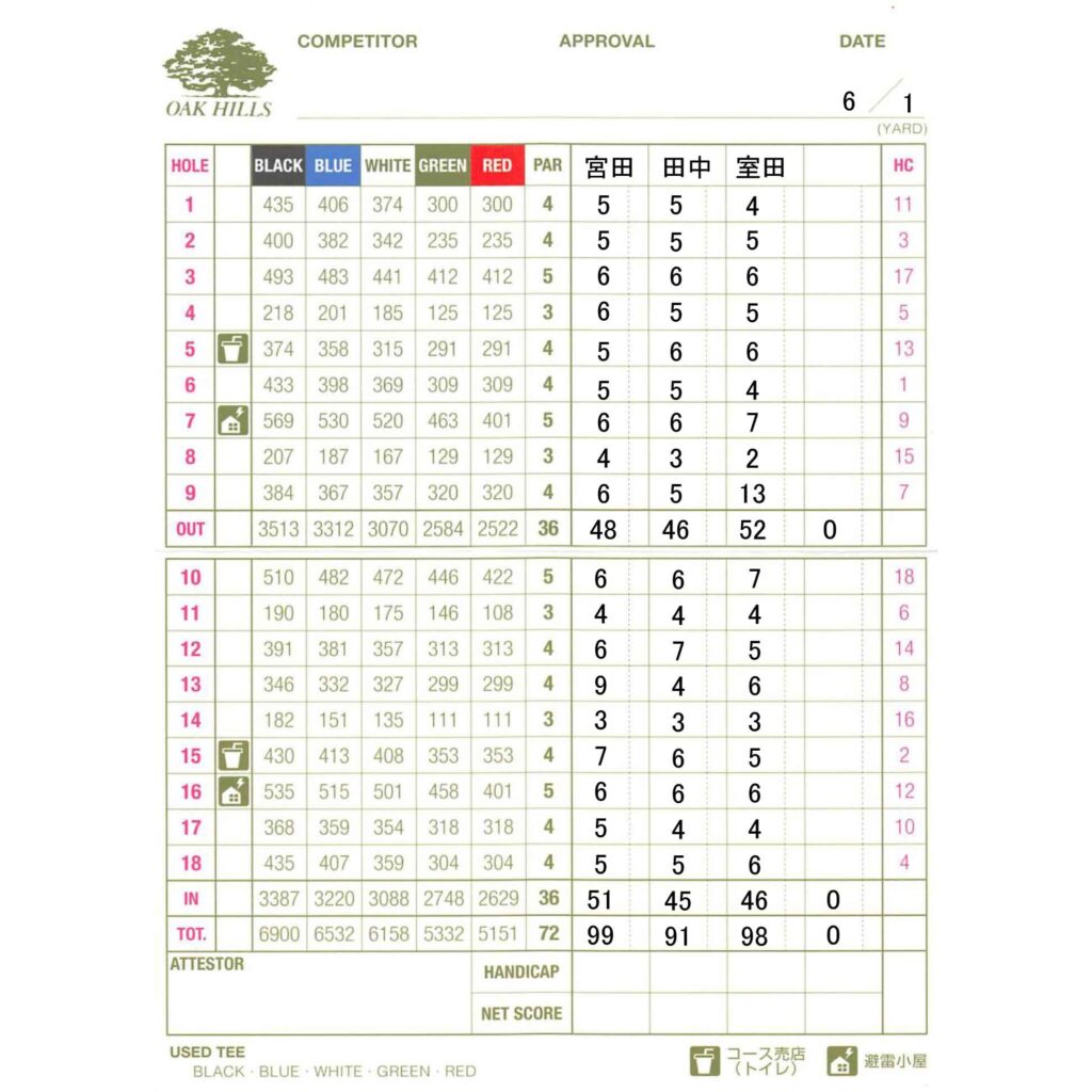 前回、119打の大叩きだったので、それくらいを覚悟していたが、20打縮まって99打だった。